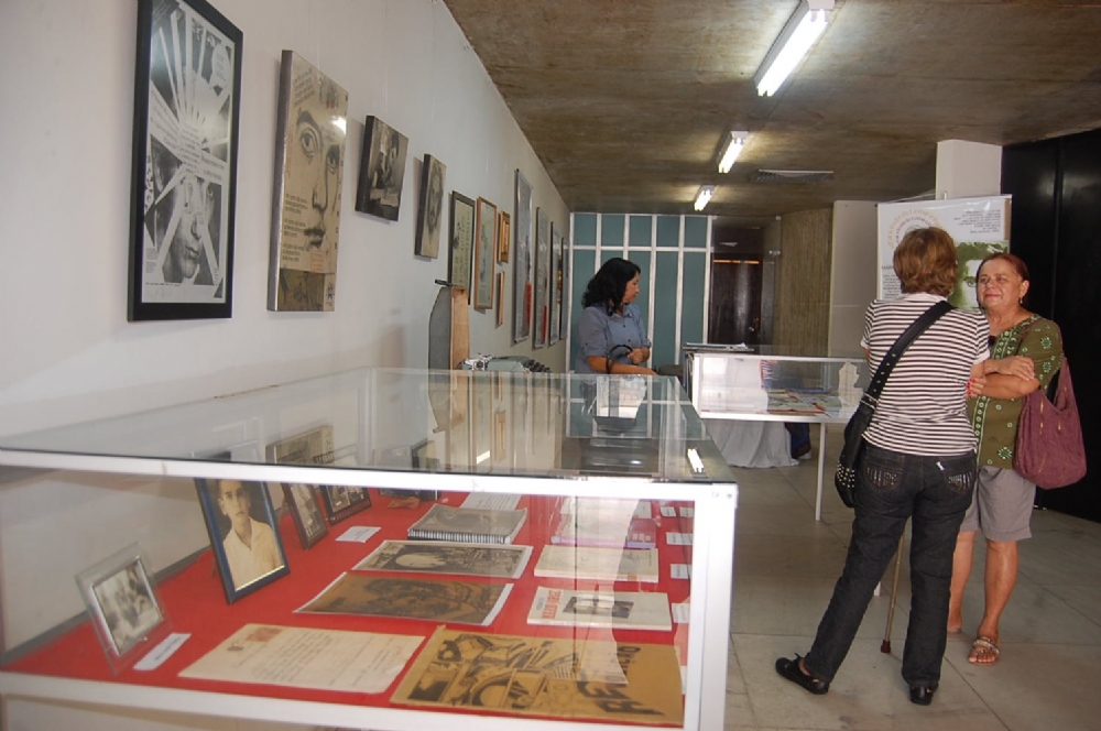 | Na Biblioteca os visitantes podem conferir uma exposição sobre o autor |